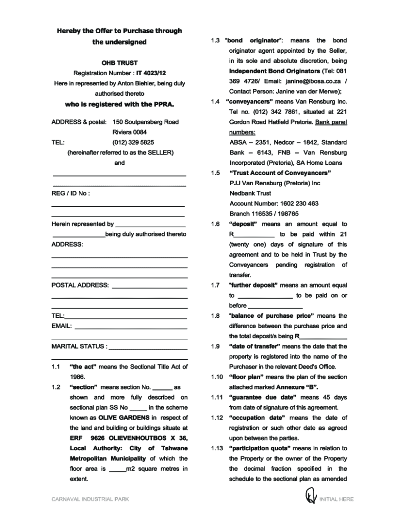 Agents professional fee appendix to offer to purchaseDevelopment: OLIVE GARDENS Property or unit description: Seller/developer: OH TRUST Purchaser: