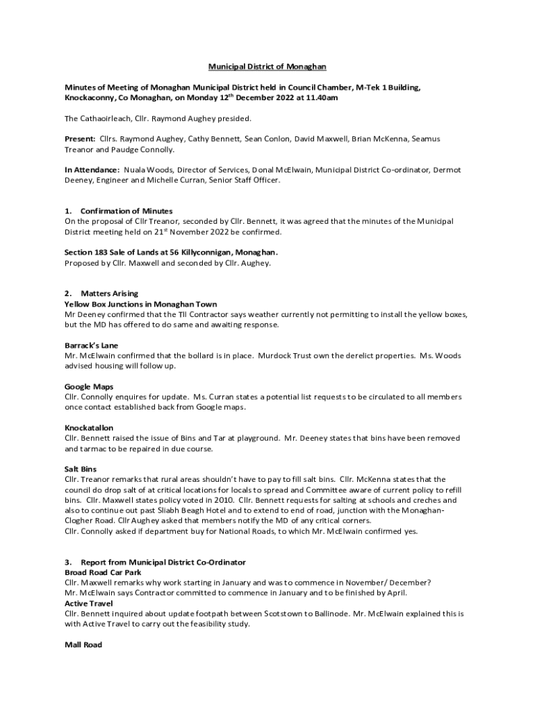 Minutes of Meeting of Jonathan Municipal District held in Council Chamber, Meek 1 Building,