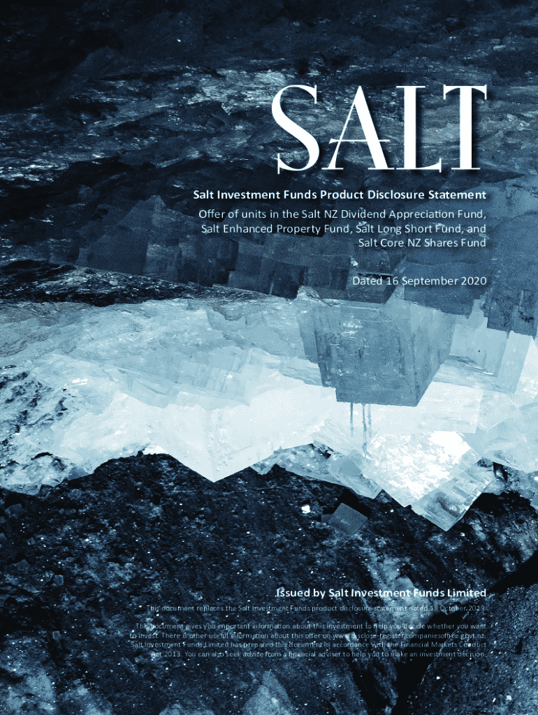 Salt Investment Funds Product Disclosure Statement Offer of units in the Salt NZ Dividend Appreciation Fund, Salt Enhanced Property Fund, Salt Long Short Fund, and Salt Core NZ Shares Fund Dated 16