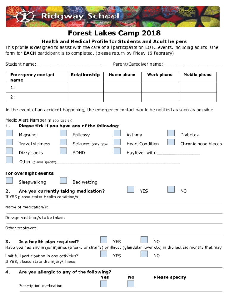 This profile is designed to assist with the care of all participants on ETC events, including adults. One