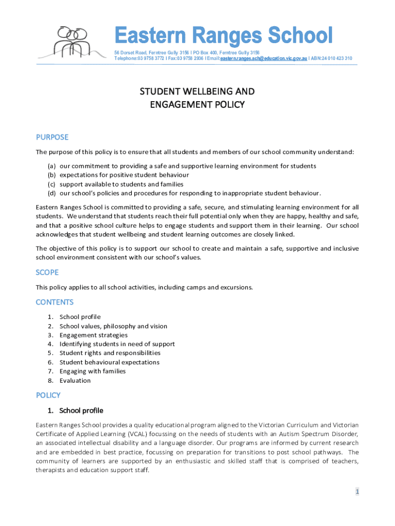 56 Dorset Road, Fern tree Gully 3156 I PO Box 400, Fern tree Gully 3156 Telephone:03 9758 3772 l Fax:03 9758 2936 l Email:eastern.ranges.sch@education.vic.gov.au I ABN:24 010 423 310STUDENT WELLBEING