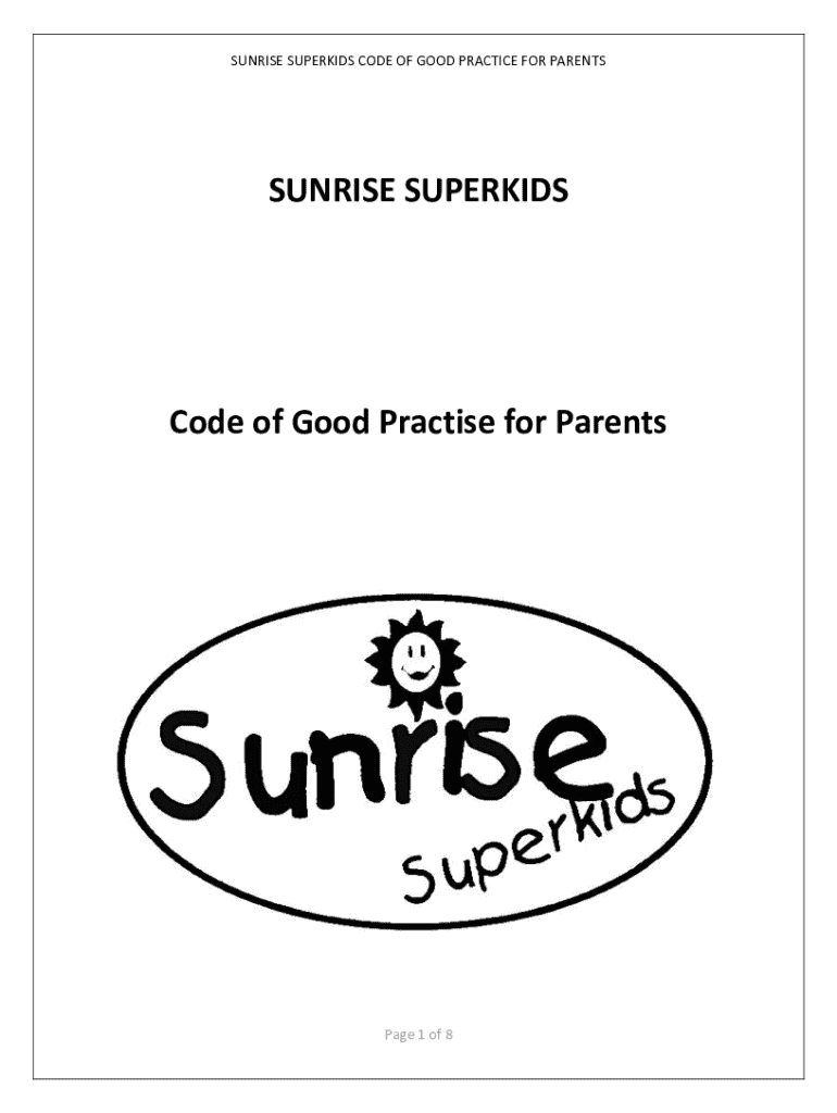 SUNRISE SUPERIOR CODE OF GOOD PRACTICE FOR PARENTSSUNRISE SUPERKIDSCode of Good Practice for Parents Page 1 of 8SUNRISE SUPERIOR CODE OF GOOD PRACTICE FOR PARENTS TABLE OF CONTENTS GLOSSARY OF TERMS