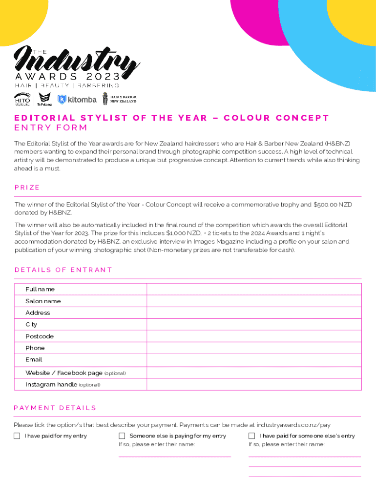 EDITORIAL STYLIST OF THE YEAR Color CONCEPT ENTRY From The Editorial Stylist of the Year awards are for New Zealand hairdressers who are Hair & Barber New Zealand (HEINZ) members wanting to expand