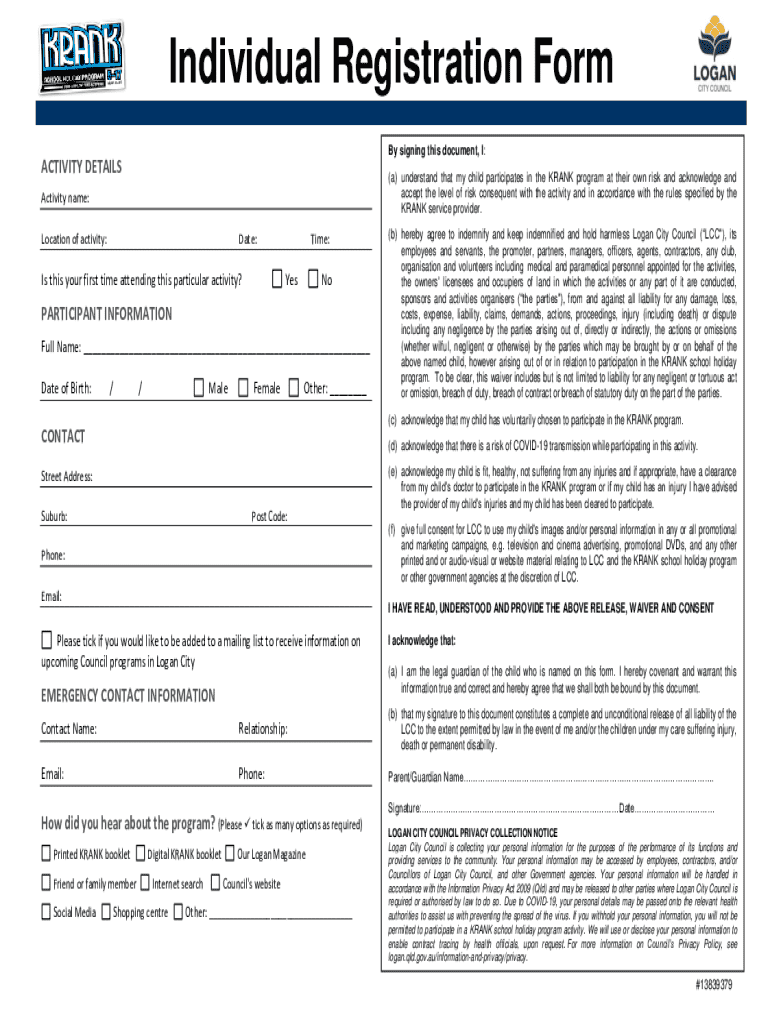 Individual Registration Form By signing this document, I:ACTIVITY DETAILS(a) understand that my child participates in the RANK program at their own risk and acknowledge and accept the level of risk