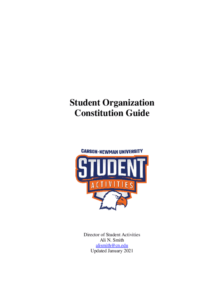 Student Organization Constitution GuideDirector of Student Activities Ali N. Smith alismith@cn.edu Updated January 2021What is a Constitution? A constitution contains the fundamental principles of