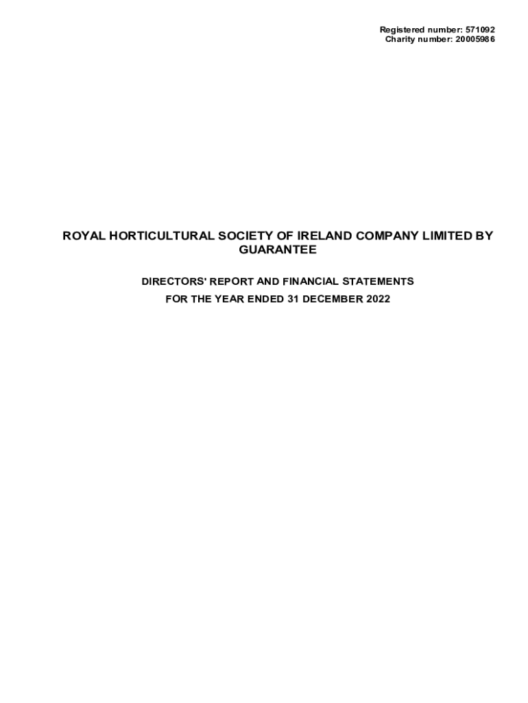 Registered number: 571092 Charity number: 20005986ROYAL HORTICULTURAL SOCIETY OF IRELAND COMPANY LIMITED BY GUARANTEE DIRECTORS\' REPORT AND FINANCIAL STATEMENTS FOR THE YEAR ENDED 31 DECEMBER 2022ROYAL