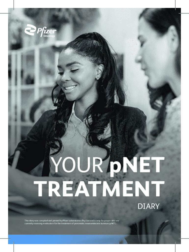 The pNET Treatment Diary is intended for patients undergoing treatment for pancreatic neuroendocrine tumors, healthcare providers involved in their care, and family members supporting them.