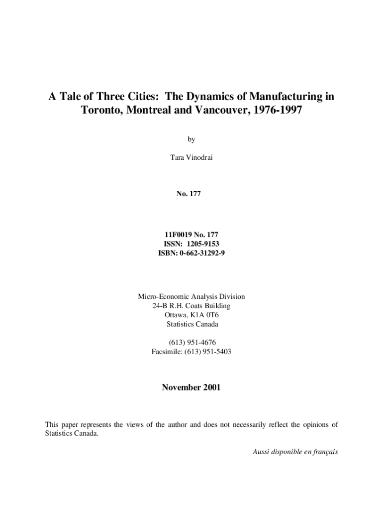 Get the free The Dynamics of Manufacturing in Toronto, Montreal and ... - publications gc
