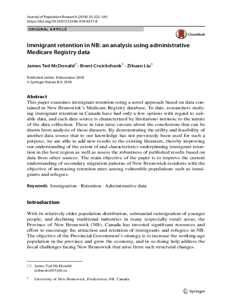 ORIGINAL ARTICLEImmigrant retention in NB: an analysis using administrative