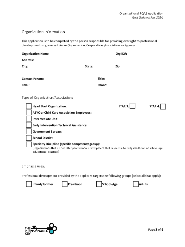 Organizational PAS Application The Office of Child Development and Early Learning (OCDE), in working to establish collaborations across the varied systems that provide professional development to