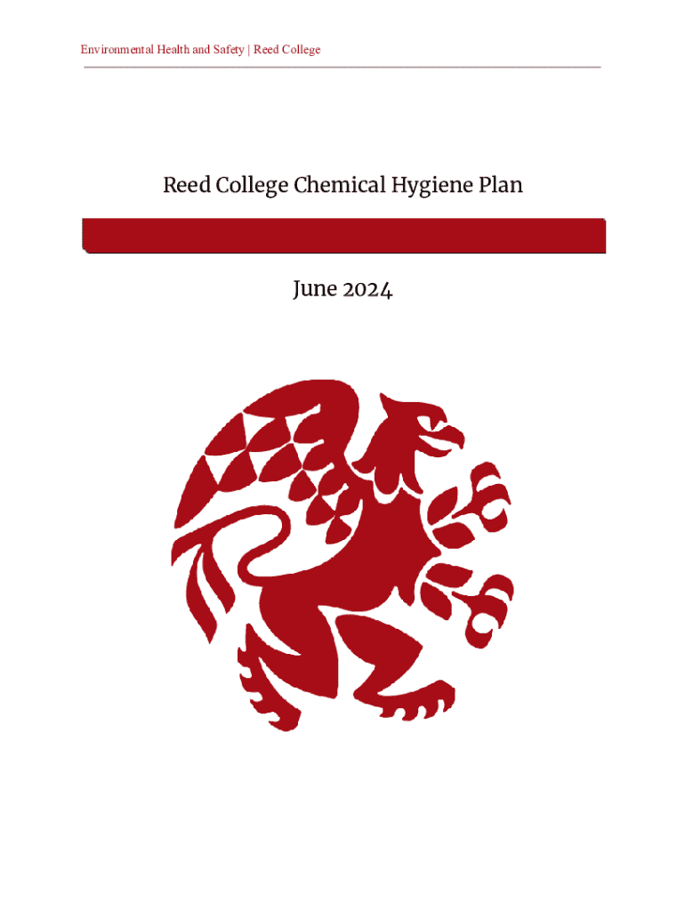 Environmental Health and Safety | Reed College Reed College Chemical Hygiene Plan June 2024Environmental Health and Safety | Reed College Page 2 of 38Table of Contents 1.0 Purpose and Scope42.0 Responsibilities
