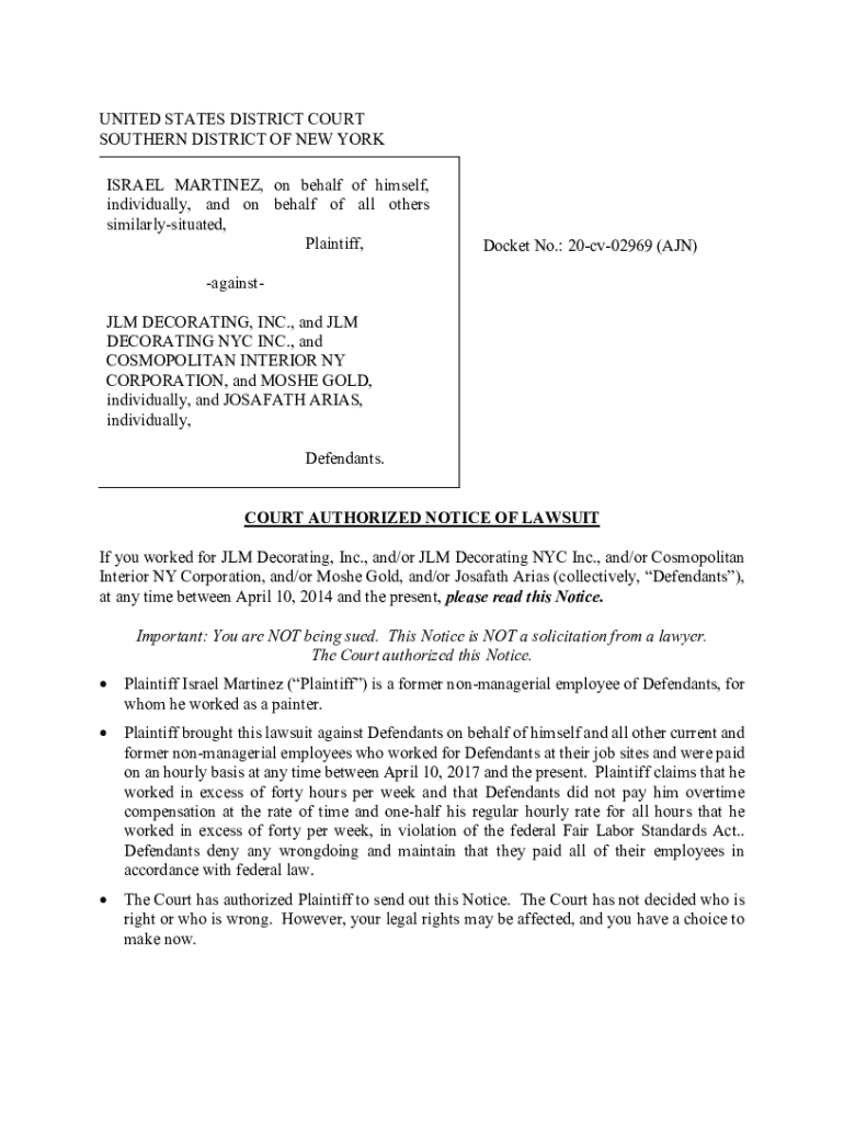 ISRAEL MARTINEZ, on behalf of himself,