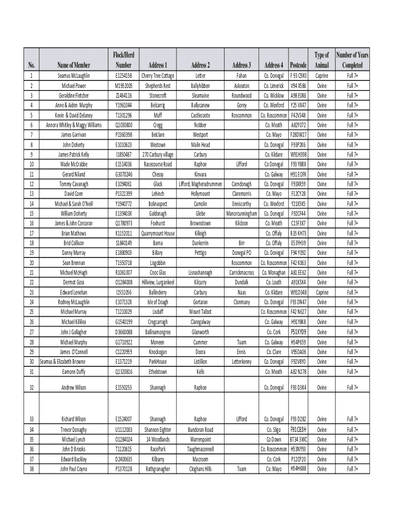 No. 1 2 3 4 5 6 7 8 9 10 11 12 13 14 15 16 17 18 19 20 21 22 23 24 25 26 27 28 29 30 31Name of Member Seamus McLaughlin Michael Power Geraldine Fletcher Anne & Aiden Murphy Kevin & David Delaney Annora
