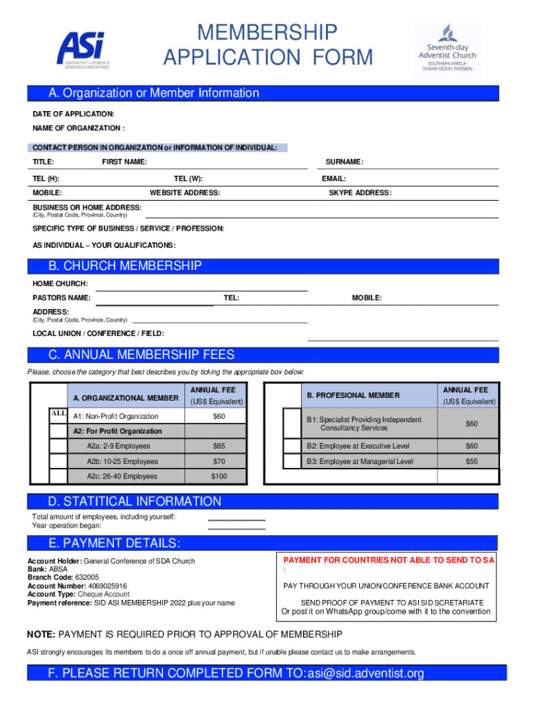 Get the free Organization or Member Information - asisauministries org