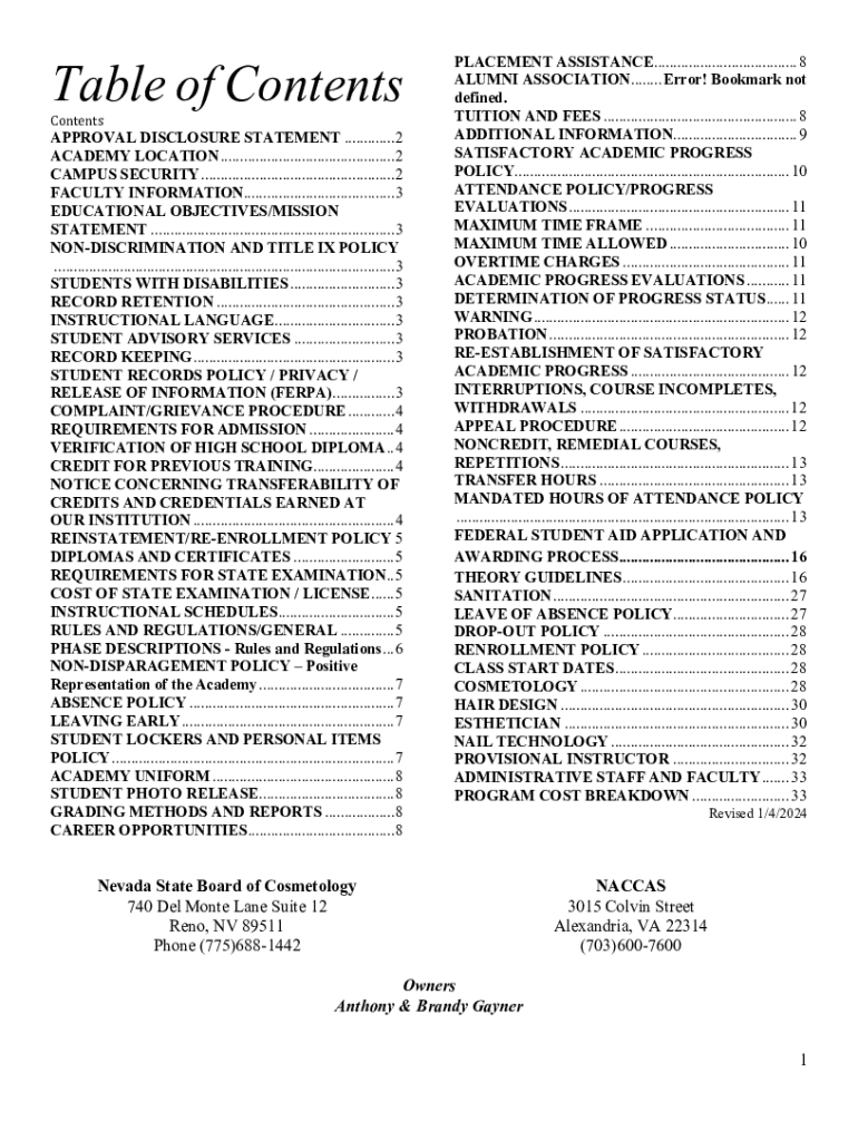 Table of Contents ContentsAPPROVAL DISCLOSURE STATEMENT ............. 2 ACADEMY LOCATION ............................................. 2 CAMPUS SECURITY ..................................................