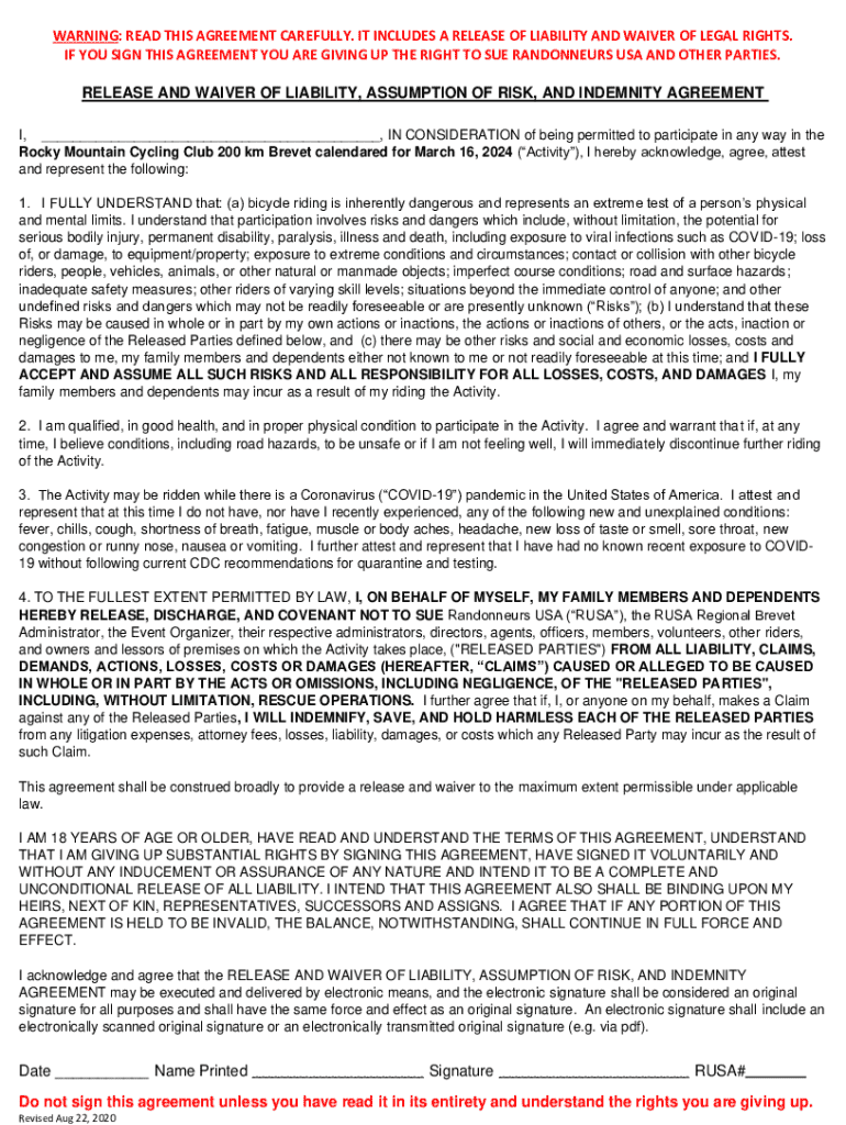 WARNING: READ THIS AGREEMENT CAREFULLY. IT INCLUDES A RELEASE OF LIABILITY AND WAIVER OF LEGAL RIGHTS.