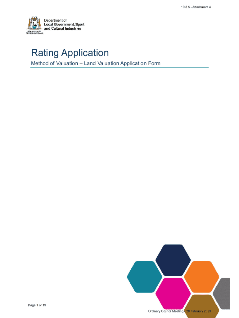 10.3.5 Attachment 4Rating Application Method of Valuation Land Valuation Application Form Page 1 of 19 Ordinary Council Meeting 20 February 202310.3.5 Attachment 4Rating Application: Method of Valuation