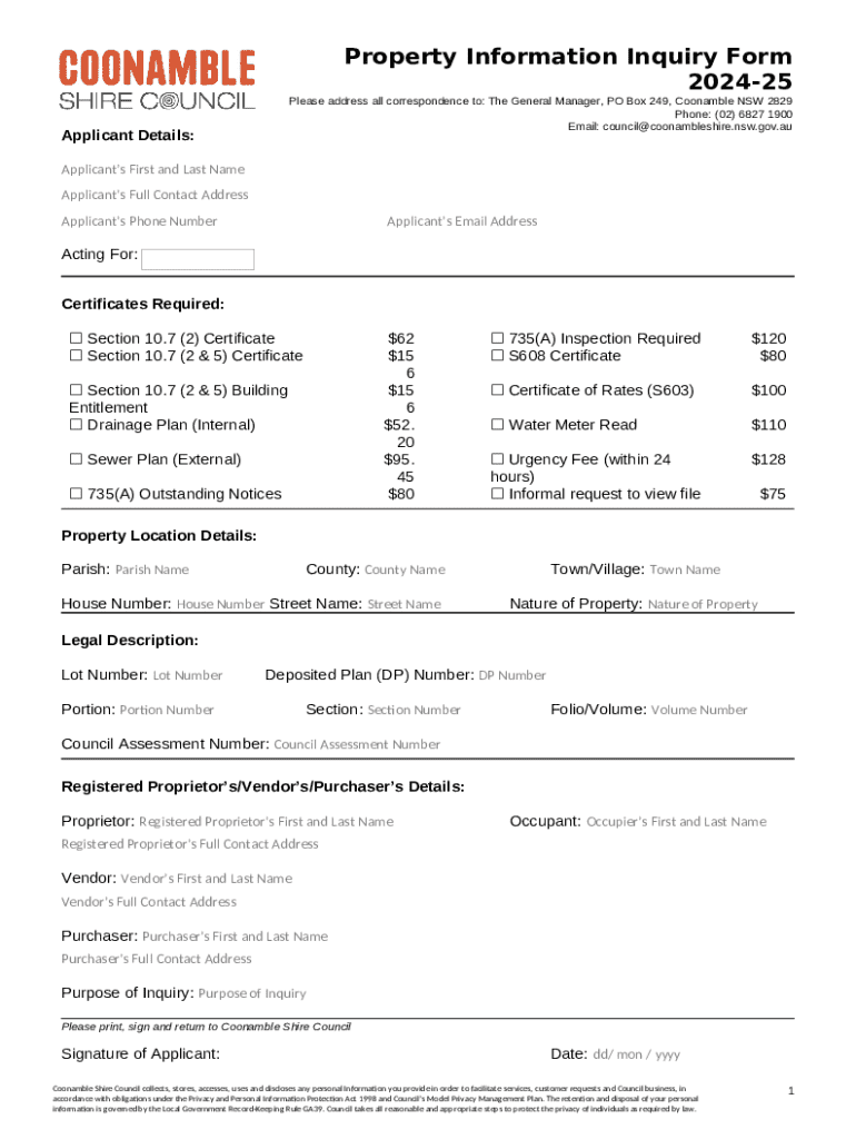 Using the online Section 10.7 Planning Certificate service template instructions