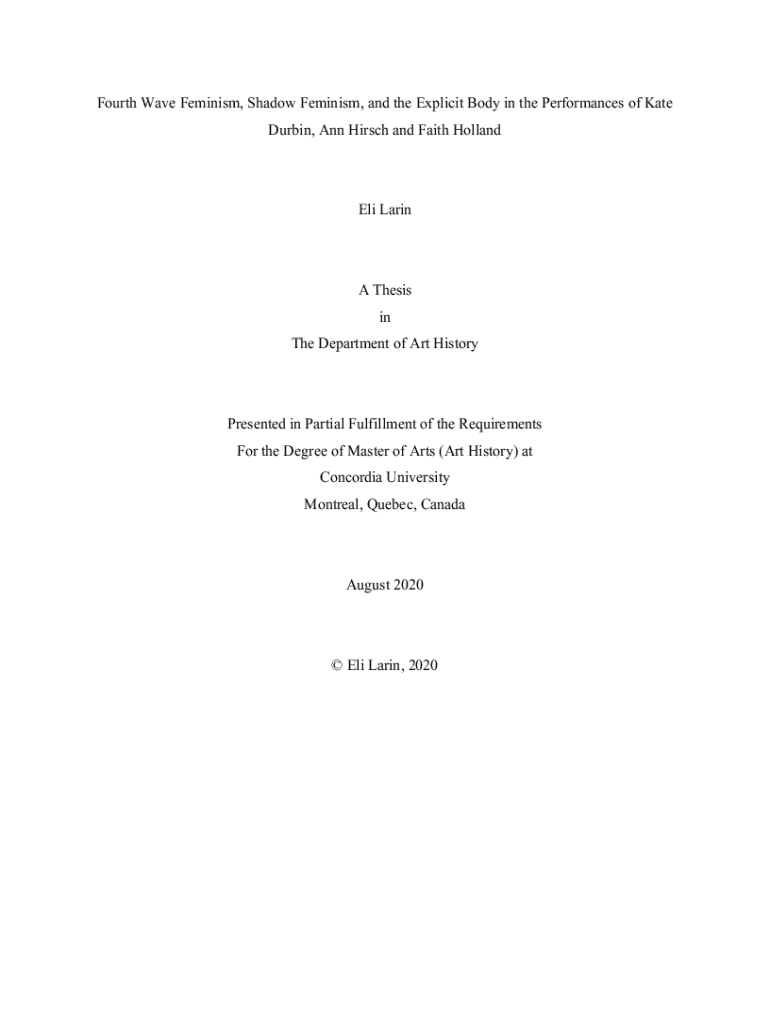 Fourth Wave Feminism, Shadow Feminism, and the Explicit Body in the Performances of Kate Durbin, Ann Hirsch and Faith Holland Eli Marina Thesis in The Department of Art HistoryPresented in Partial