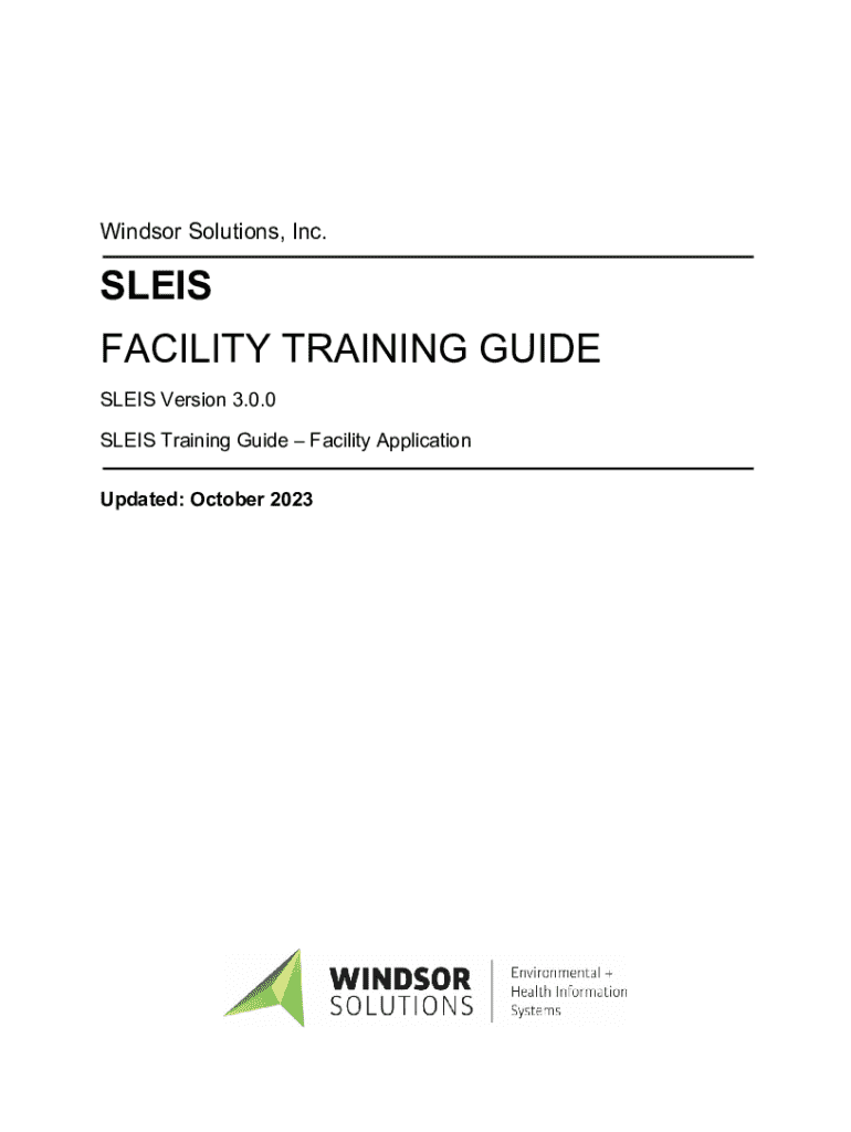Get the free Windsor Solutions, Inc. - SLEIS FACILITY TRAINING GUIDE