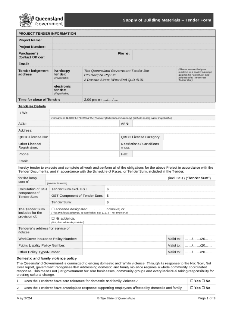 How to fill Supply of Building Materials Tender . Building construction and maintenance standard contracts word template