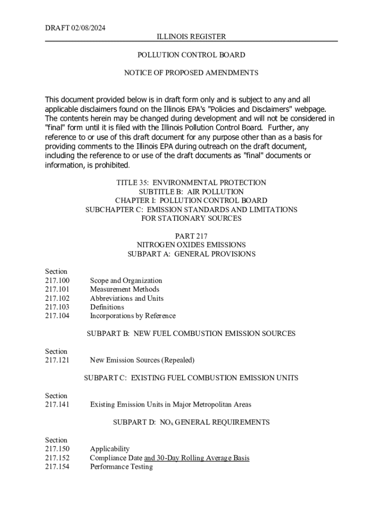 DRAFT 02/08/2024ILLINOIS REGISTER POLLUTION CONTROL BOARD NOTICE OF PROPOSED AMENDMENTSThis document provided below is in draft form only and is subject to any and all applicable disclaimers found