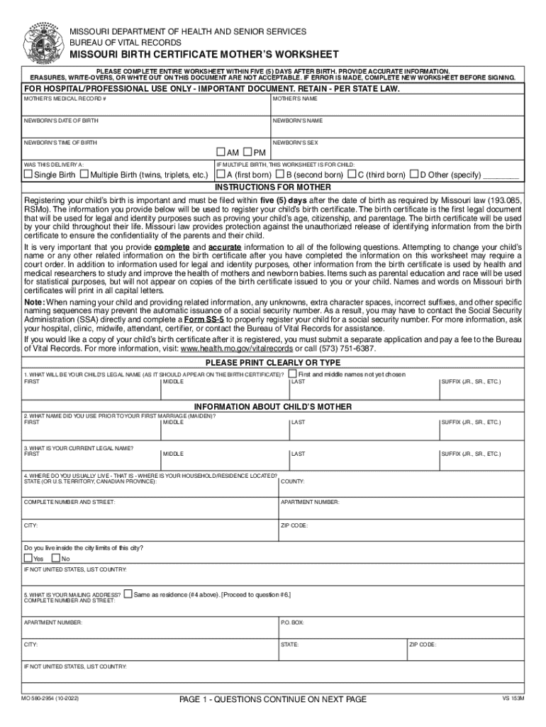 How to fill out 580-2954 10-2022 missouri birth