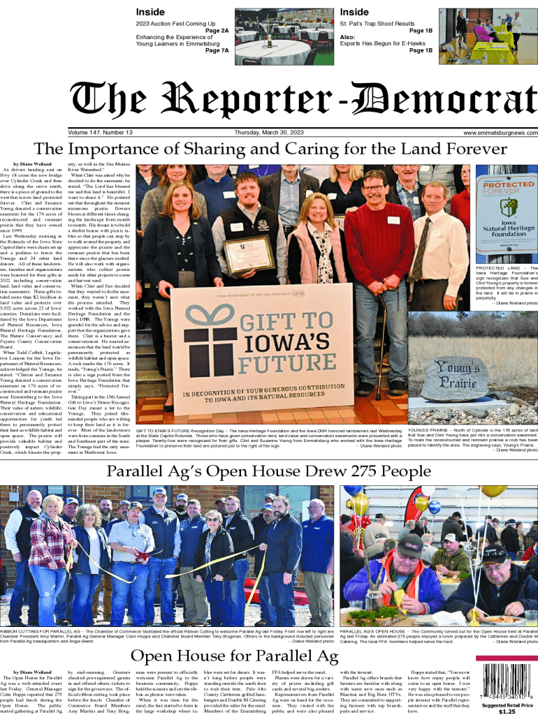 InsideInside2023 Auction Fest Coming Up Page 2A Enhancing the Experience of Young Learners in Emmetsburg Page 7ASt. Pats Trap Shoot Results Page 1B Also: Esports Has Begun for EHawks Page 1BThe ReporterDemocrat