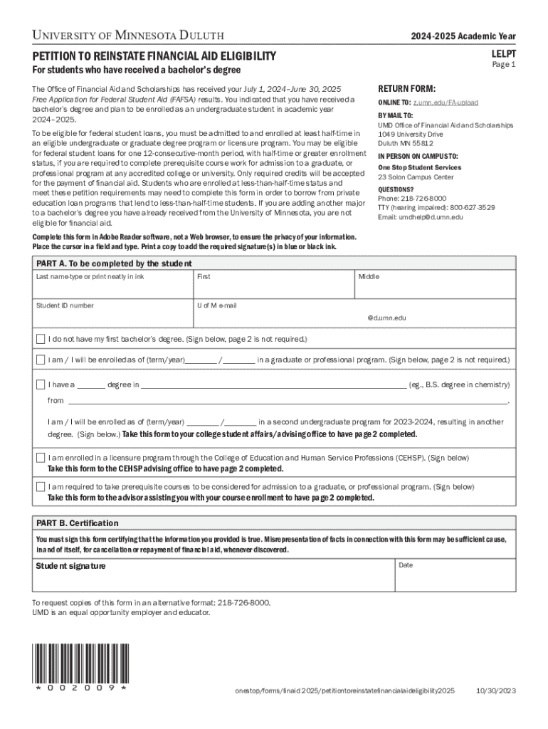 UNIVERSITY OF MINNESOTA DULUTHThis cover page includes instructions about where and how to turn in your form. If you are submitting a form that contains personally identifiable information (i.e. name,