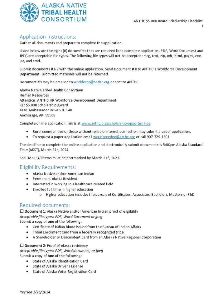 ANTIC $5,000 Board Scholarship Checklist 1Application Instructions: Gather all documents and prepare to complete the application. Listed below are the eight (8) documents that are required for a complete