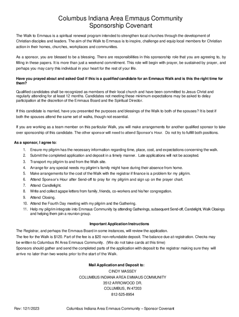 Get the free Emmaus Sponsor Convenant & Pilgrim Application