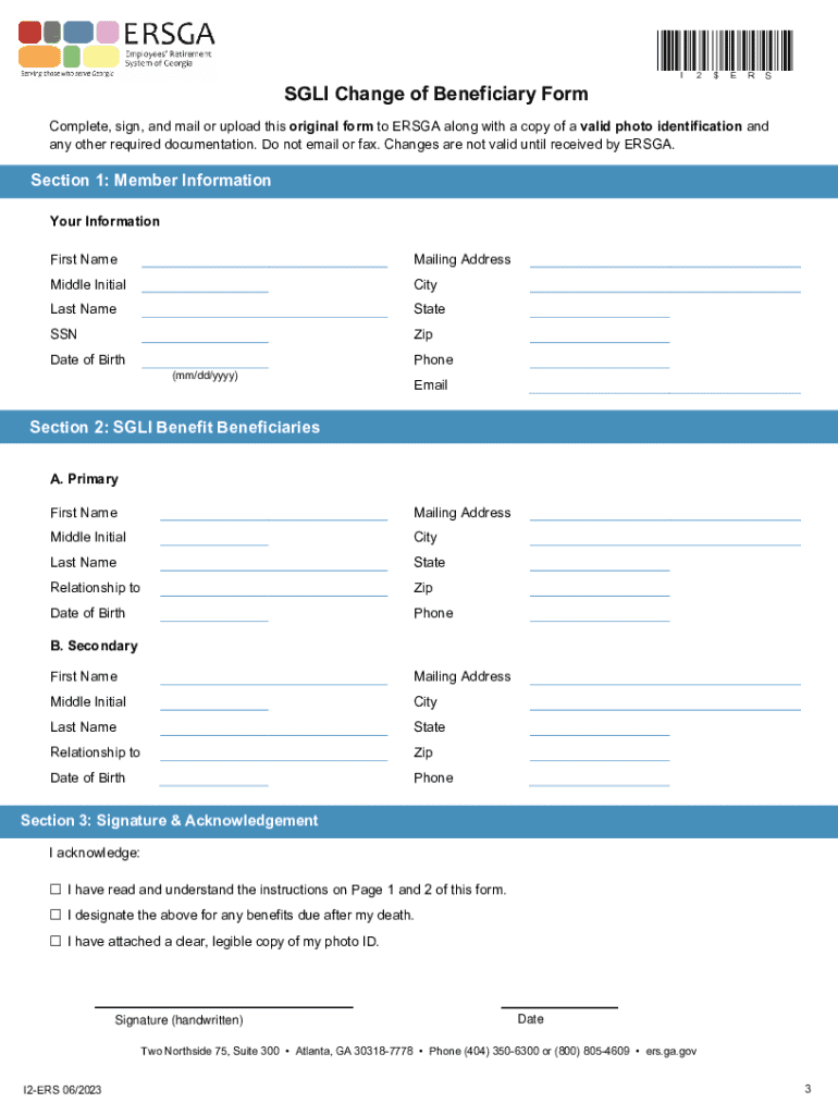 Supplemental Guaranteed Lifetime Income (SGLI) Change of Beneficiary Form Instructions This form is for ERS Retirees with a Supplemental Guaranteed Lifetime Income (SGLI) benefit to update their SGLI