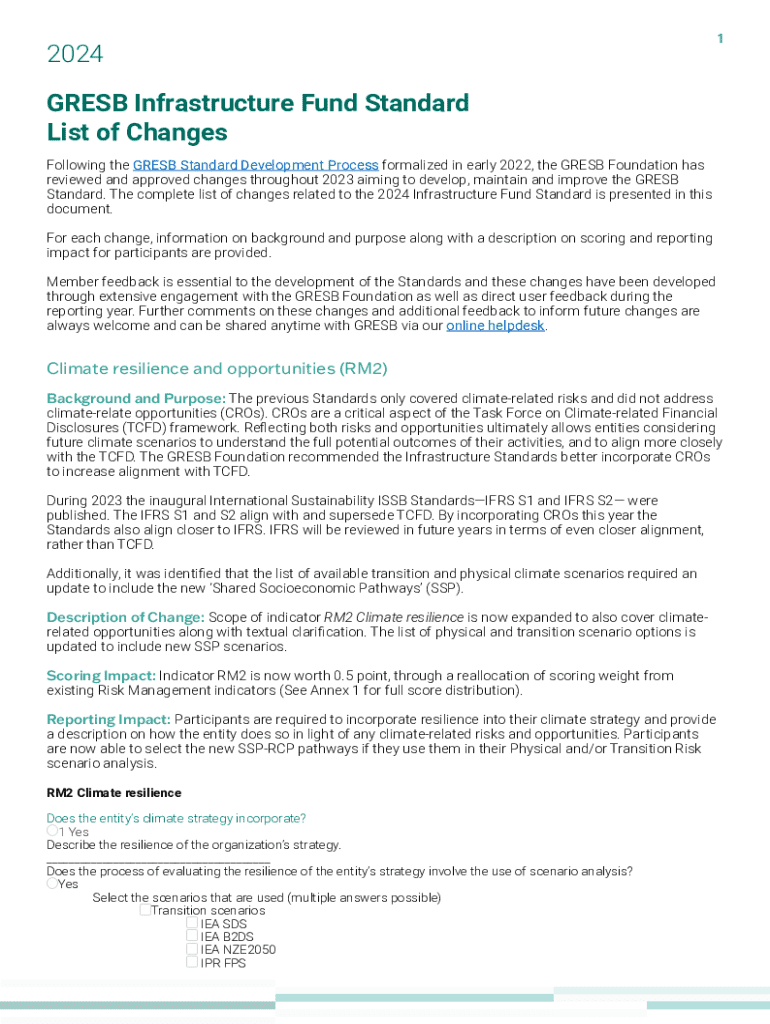 20241GRESB Infrastructure Fund Standard List of Changes Following the GRESB Standard Development Process formalized in early 2022, the GRESB Foundation has reviewed and approved changes throughout