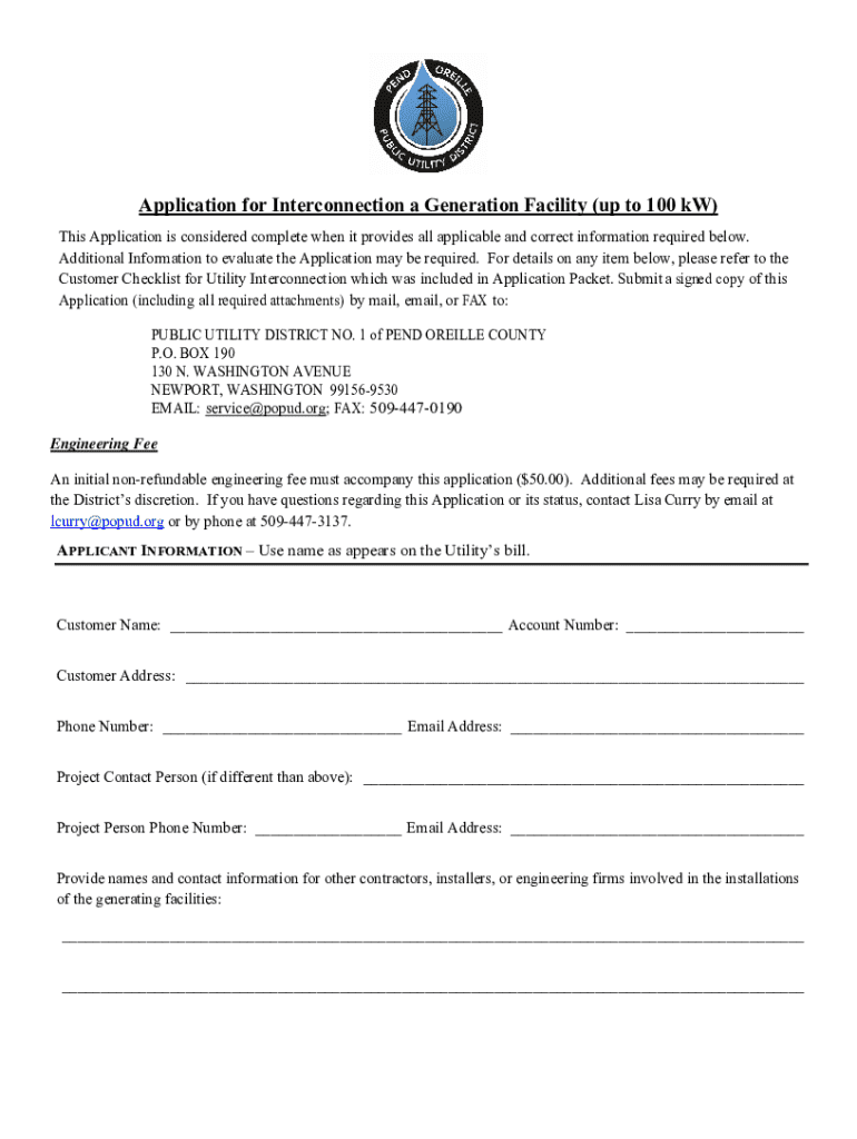 Get the free Application for Interconnecting a Generating Facility No Larger ...