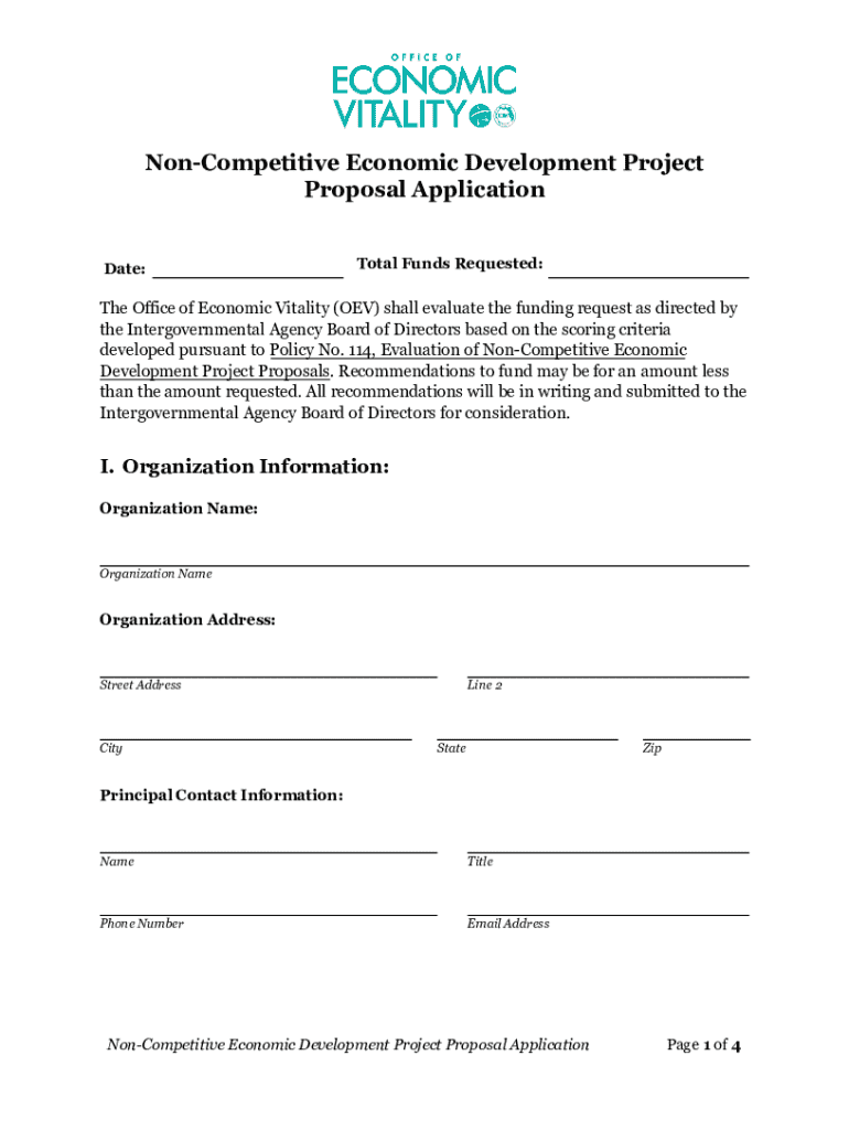 Noncompetitive Economic Development Project Proposal Application Date:Total Funds Requested:The Office of Economic Vitality (REV) shall evaluate the funding request as directed by the Intergovernmental
