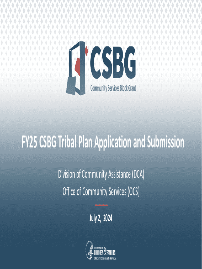 FY25 CSG Tribal Plan Application and Submission Division of Community Assistance (DCA) Office of Community Services (OCS) July 2, 202423Webinar Engagement Everyone has been muted on entry. Please