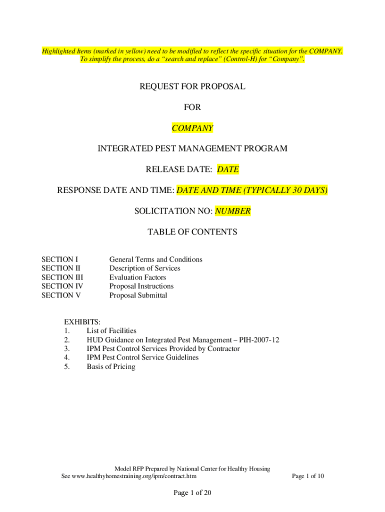 Highlighted Items (marked in yellow) need to be modified to reflect the specific situation for the COMPANY. To simplify the process, do a search and replace (ControlH) for Company.REQUEST FOR PROPOSAL