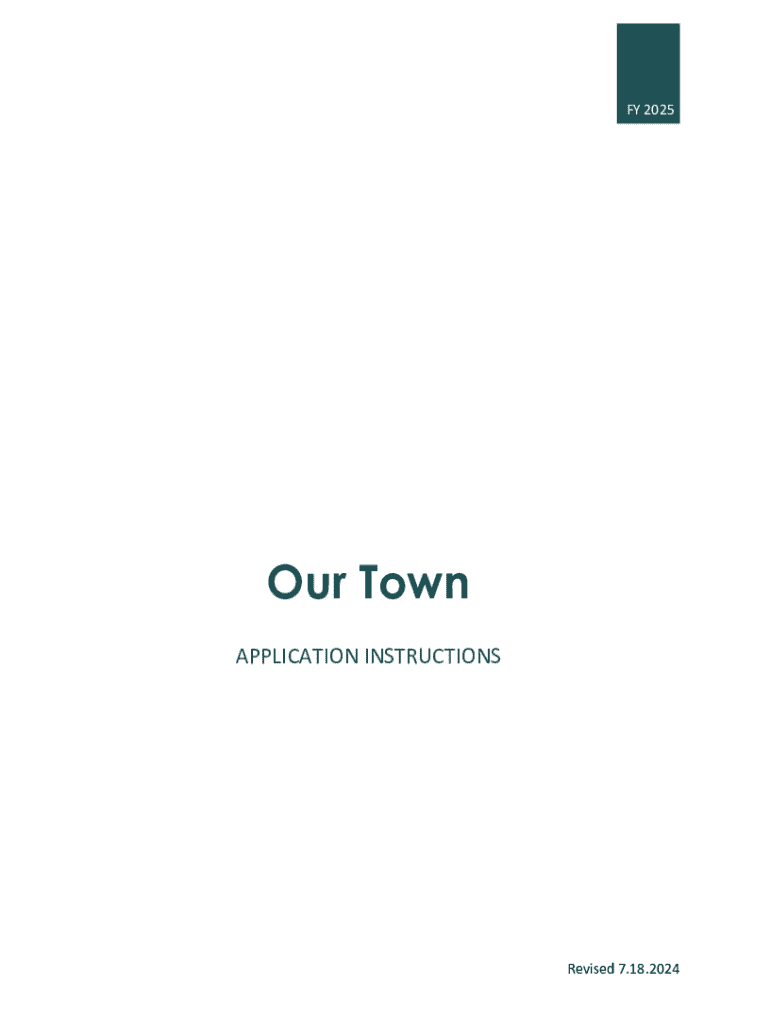 FY 2025Our Town APPLICATION INSTRUCTIONSRevised 7.18.2024Table of ContentsClick a heading below to navigate directly to that section. How to Apply .......................................................................................................................