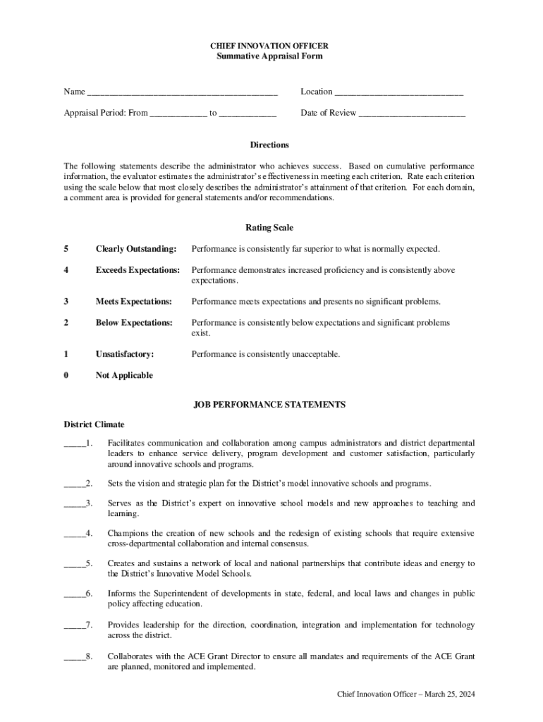 CHIEF INNOVATION OFFICERSummative Appraisal Forename ___Location ___Appraisal Period: From ___ to ___Date of Review ___Directions The following statements describe the administrator who achieves success.