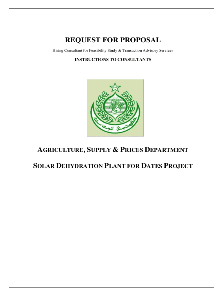 REQUEST FOR PROPOSAL Hiring Consultant for Feasibility Study & Transaction Advisory ServicesINSTRUCTIONS TO CONSULTANTSAGRICULTURE, SUPPLY & PRICES DEPARTMENT SOLAR DEHYDRATION PLANT FOR DATES PROJECTIMPORTANT