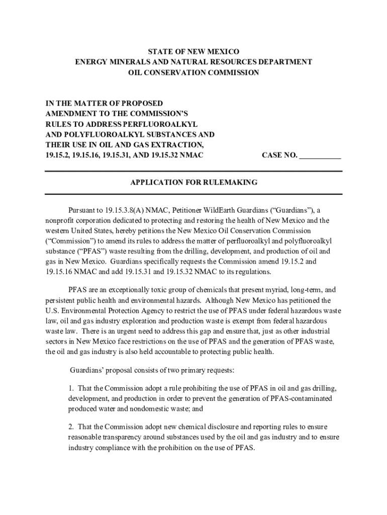 STATE OF NEW MEXICO ENERGY MINERALS AND NATURAL RESOURCES DEPARTMENT OIL CONSERVATION COMMISSIONIN THE MATTER OF PROPOSED AMENDMENT TO THE COMMISSIONS RULES TO ADDRESS PERFLUOROALKYL AND POLYFLUOROALKYL