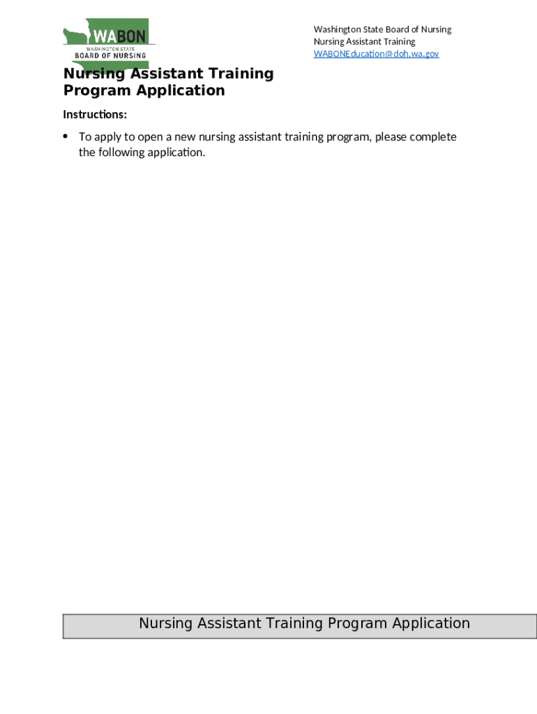 New Nursing Assistant Training Program Application template instructions