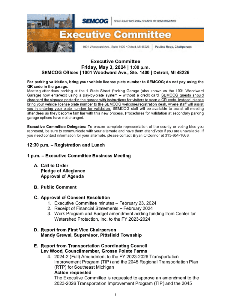 Friday, May 3, 2024 | 1:00 p.m.SEM COG Offices | 1001 Woodward Ave., Ste. 1400 | Detroit, MI 48226