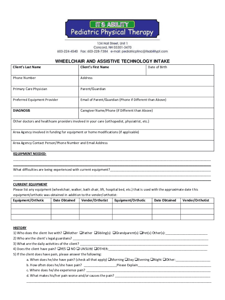 WHEELCHAIR AND ASSISTIVE TECHNOLOGY INTAKE