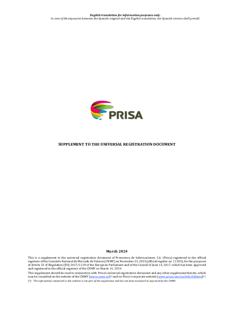 In case of discrepancies between the Spanish original and the English translation, the Spanish version shall prevail. SUPPLEMENT TO THE UNIVERSAL
