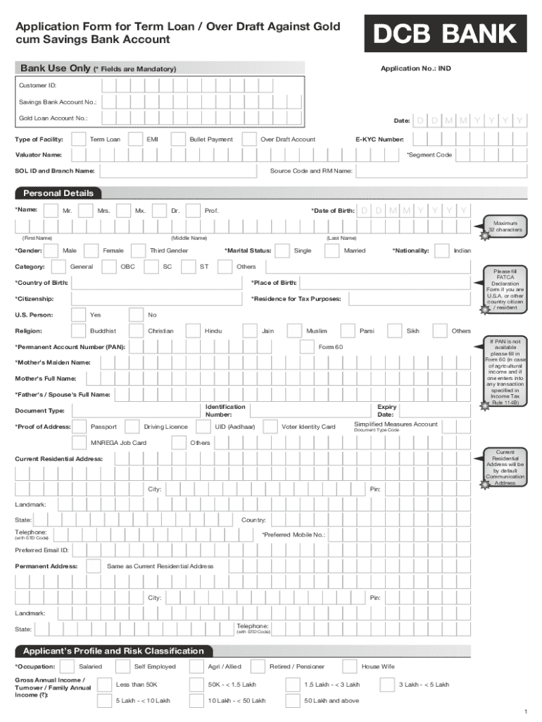 Get the free Application Form for Loan-OD Against Gold Cum SA ( ...