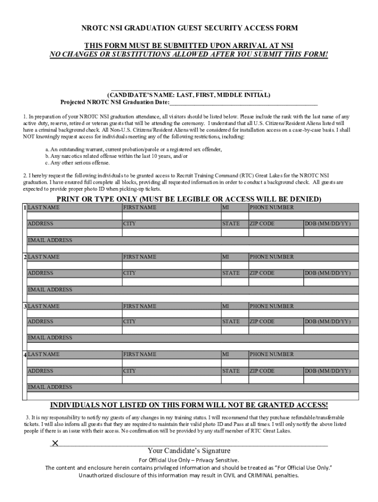 DOD NROTC NSI Graduation Guest Security Access Form 2022-2025 free printable template