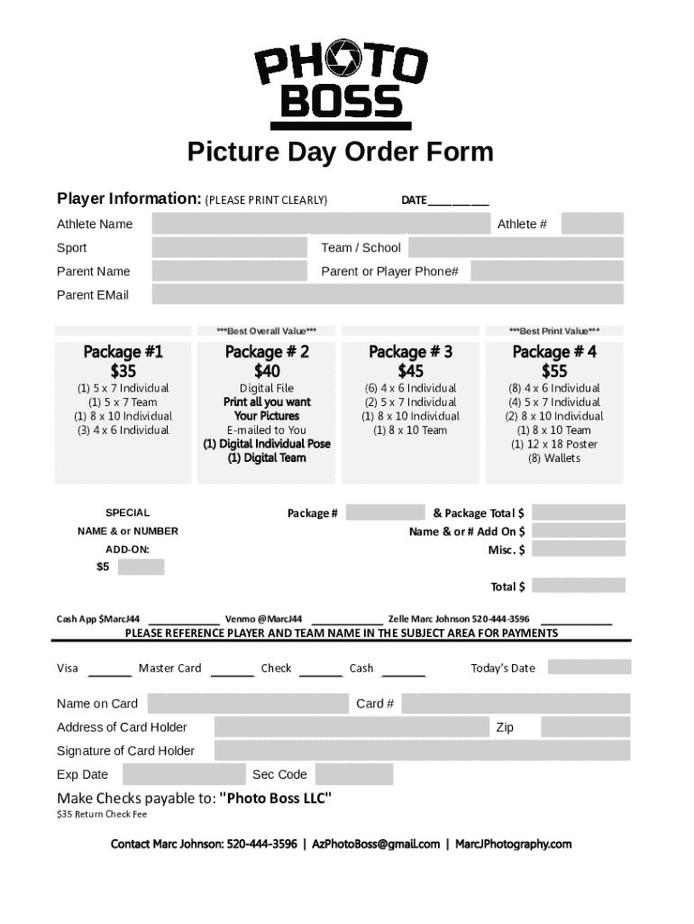 Fill out the necessary forms with your personal information and make any selections for the picture package.