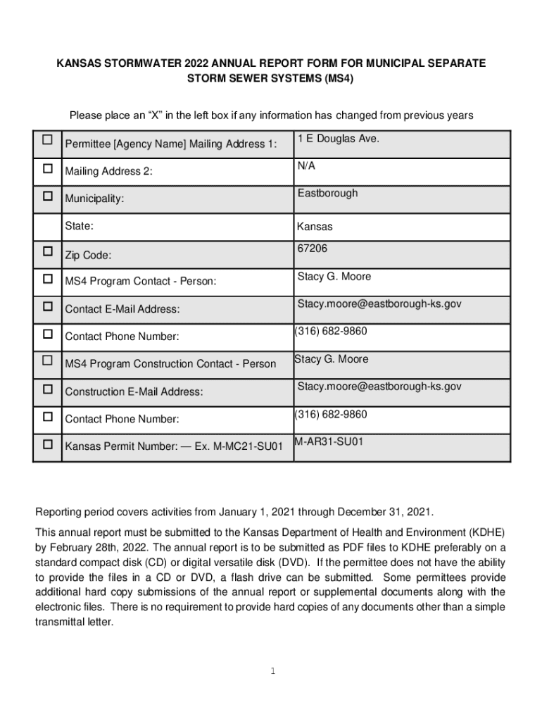 KANSAS STORMWATER 2022 ANNUAL REPORT FORM FOR MUNICIPAL SEPARATE