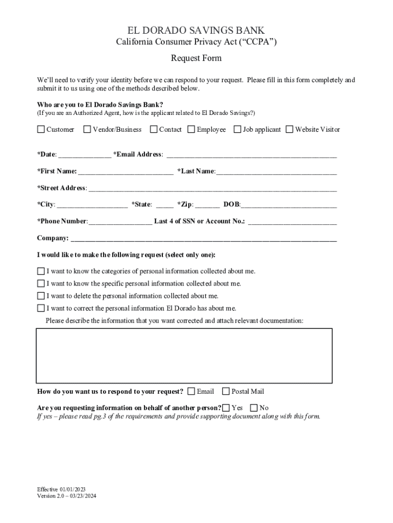 Well need to verify your identity before we can respond to your request. Please fill in this form completely and